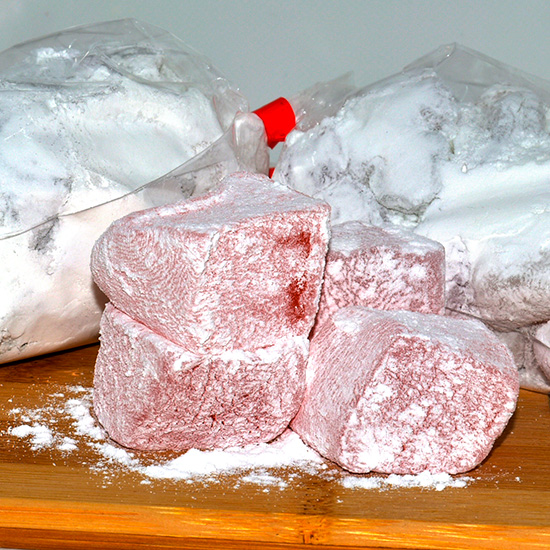 Μεγάλα κομμάτια λουκουμιών με αρωματικό τριαντάφυλλο και γεύση που μας θυμίζουν παλιές εποχές.